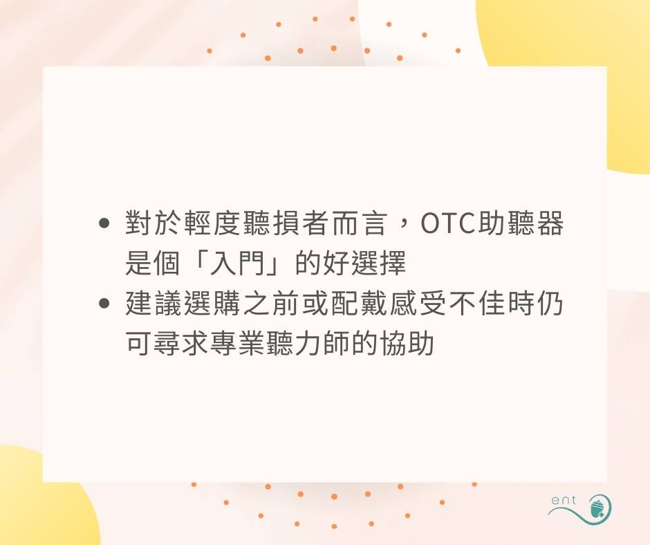 基於以上幾點,OTC助聽器的便利性與價位對輕度聽損者來說是個「入門」好選擇,不過建議在購買前或是使用上有不適時仍可尋求專業聽力師的協助。