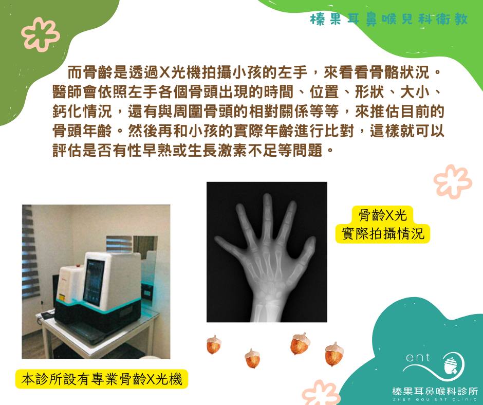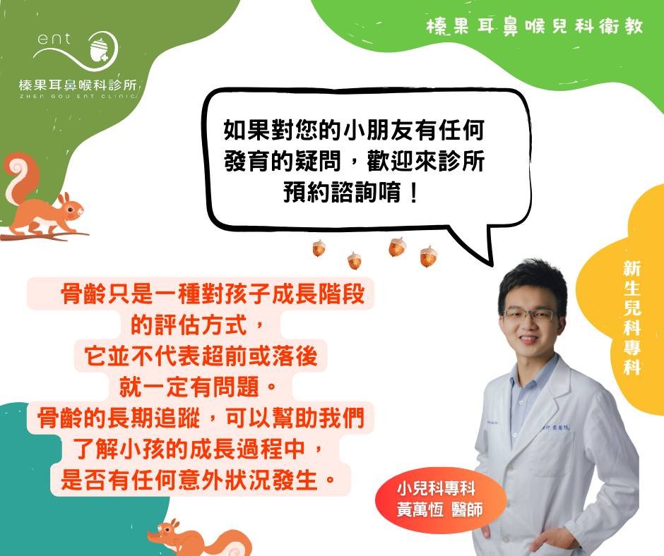 骨齡的長期追蹤,可以幫助我們了解小孩的成長過程中,是否有任何意外狀況發生,如果對您的小朋友有任何發育的疑問,榛果耳鼻喉現在也可以照骨齡x光~歡迎來診所預約諮詢喔!