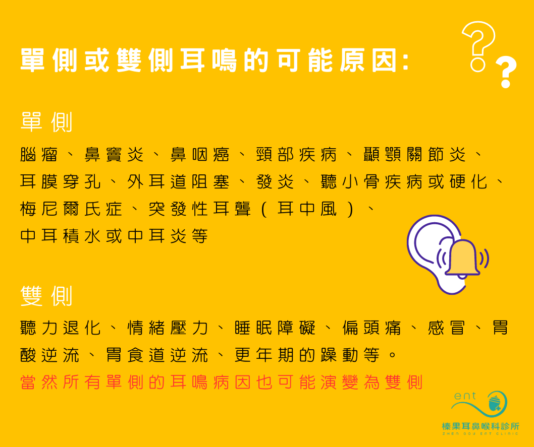 單側或雙側耳鳴的可能原因有什麼?
