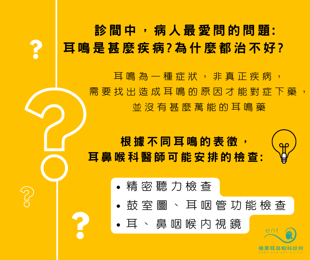 『耳鳴為一種症狀,非真正疾病,需要找出造成耳鳴的原因才能對症下藥。』