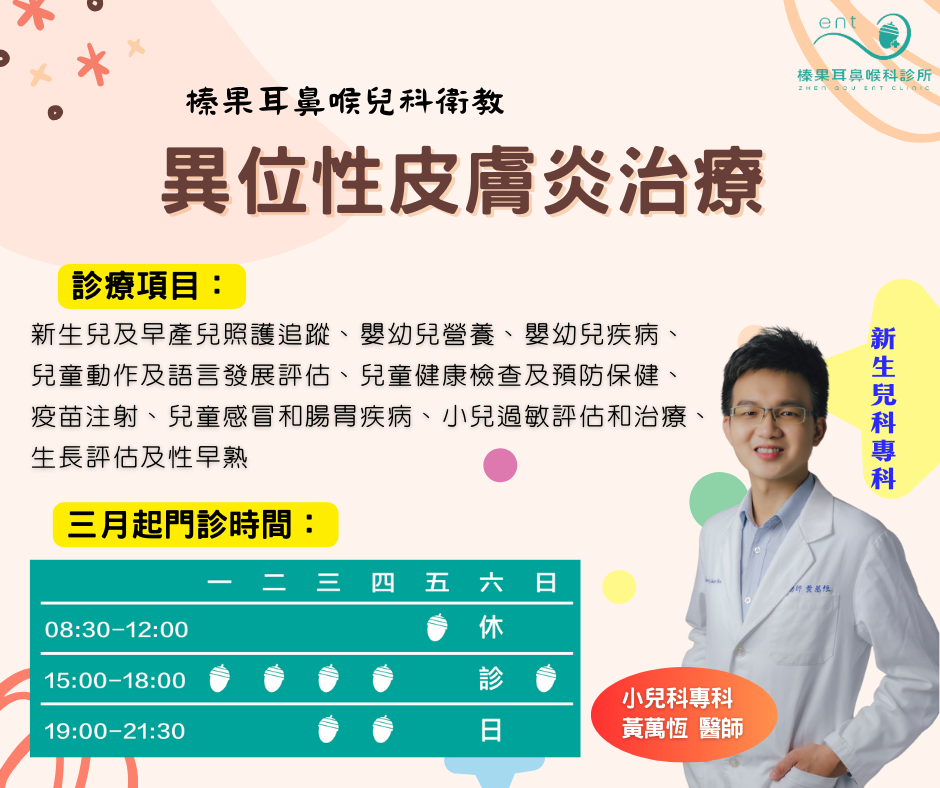 三月份開始小兒科專科黃醫師門診調整更多囉~