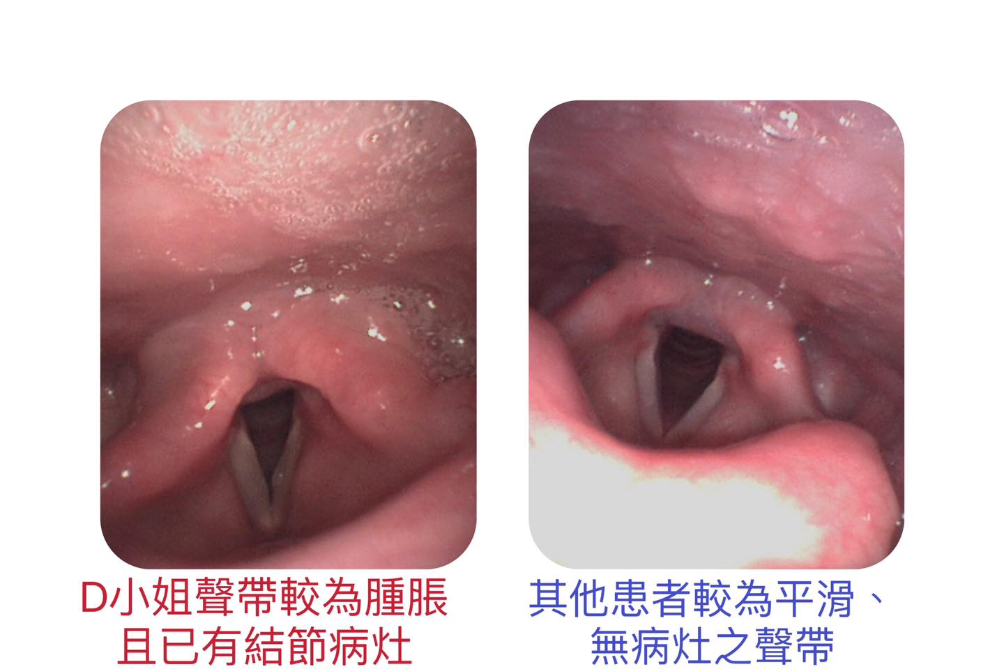 D小姐本身為幼兒園老師,需長期使用嗓音而有聲音沙啞的問題,且最近合併感冒咳嗽等症狀,沙啞情形更為嚴重