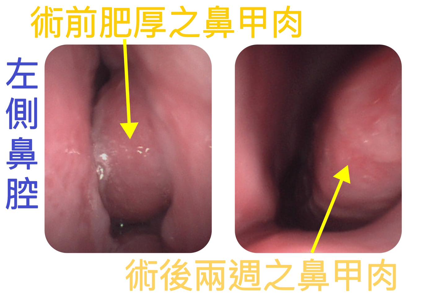 術後兩週回診,G小姐鼻甲肉傷口恢復良好、已無明顯傷口與分泌物,並且鼻甲肉縮小有感,鼻腔通道明顯!終於能夠使用鼻子暢快呼吸~
