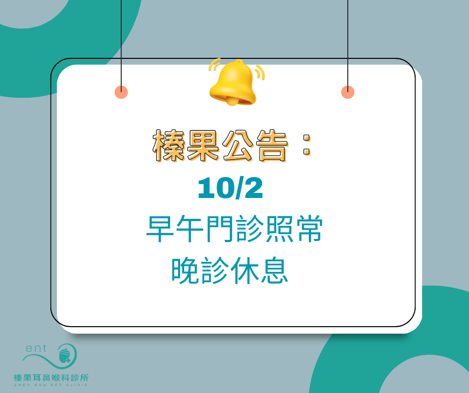 榛果耳鼻喉科最新消息 10/2 門診公告