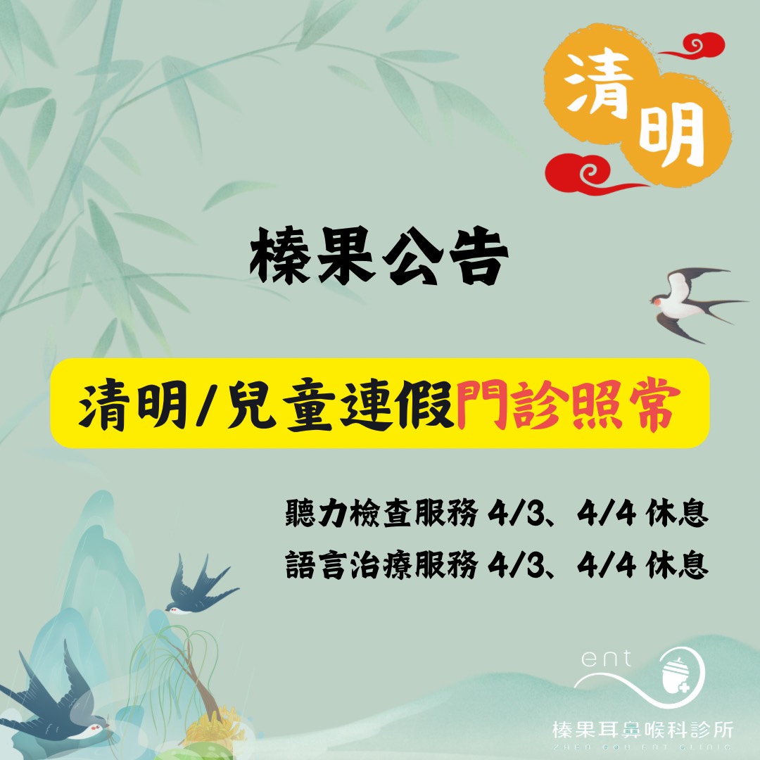清明/兒童連假『門診照常』(台中耳鼻喉科/西屯小兒科診所)