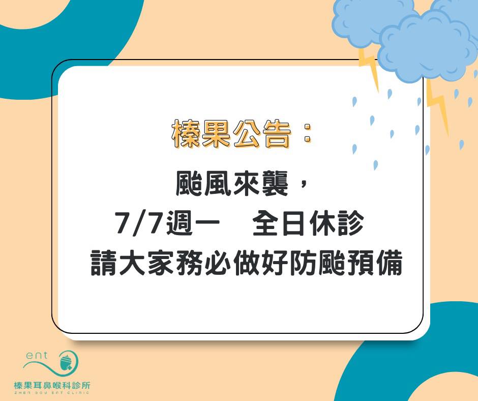 榛果耳鼻喉科最新消息 7/7 颱風休診一日
