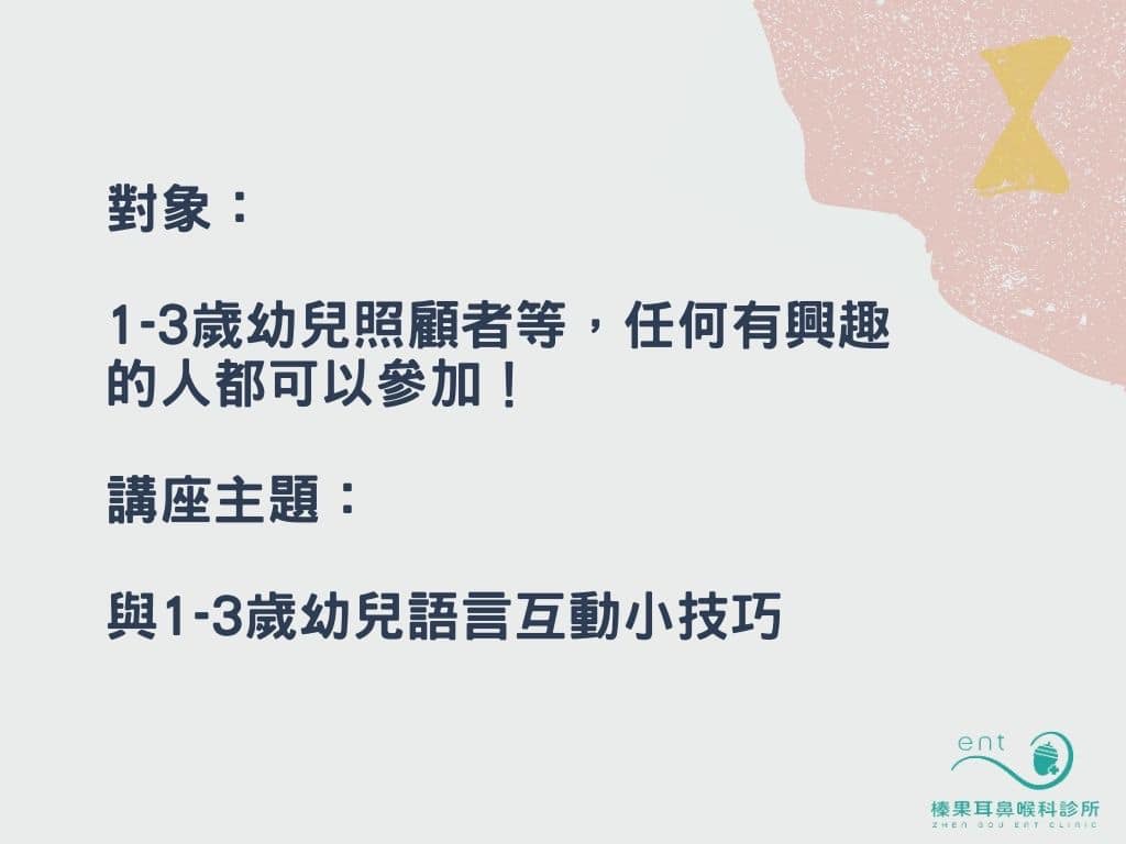 榛果耳鼻喉科最新消息 【線上講座】 1-3歲幼兒語言互動小技巧