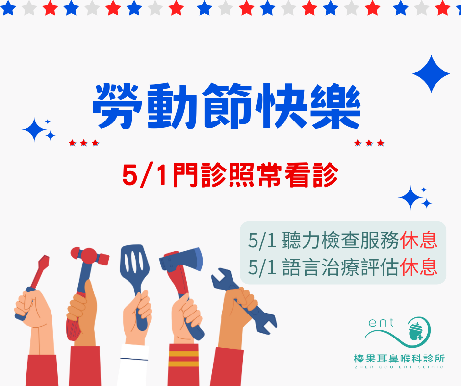 榛果耳鼻喉科最新消息 5/1勞動節門診照常